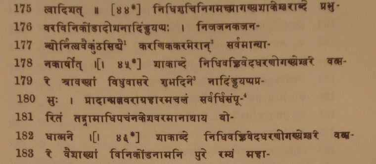 _________________________________________________________________________________ [1] Read º ; K. illegible. [2] The third of this word is expressed by the old sign. K. seems to read º(Sanskrit)º by correction. [3] K. º. [4] Read º ; K. illegible. [5] K. probably º º. [6] Read ºº. [7] K. º. [8] Read º-; in K. probably corrected. [9] Read º, as correctly in K. [10] The anusvâra stands at the beginning of the next line. [11] Read , as correctly in K. [12] Read º. [13] K. º. [14] Read º. [15] The anusvâra stands at the beginning of the next line. [16] Read ºº, as correctly in K.